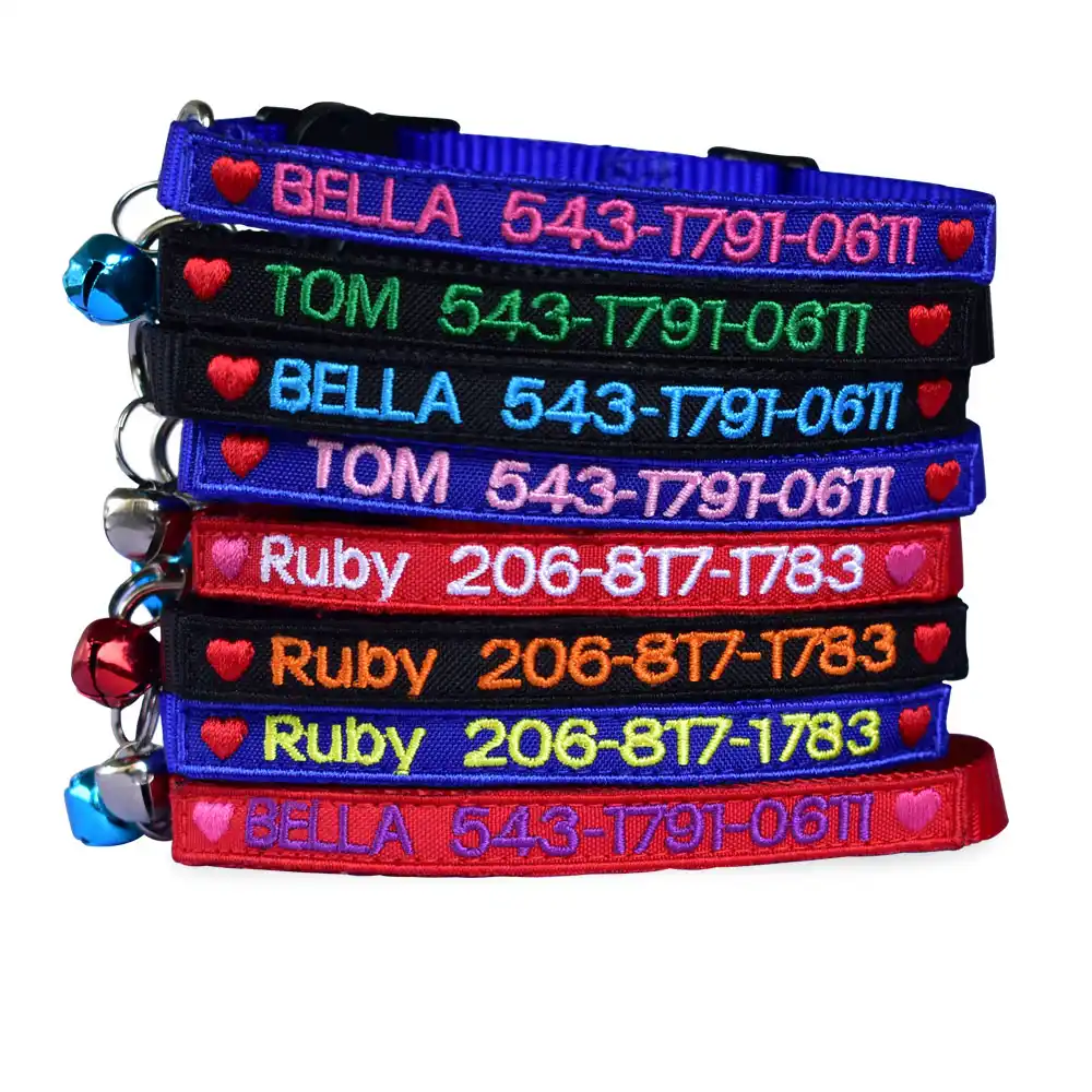 About 73% of these are pet collars & leashes. This safe cat collar is durable, adjustable and available with a bell to keep your feathered friends safe too. 7 flowertown personalized embroidered cat id with bell. Breakaway cat collars with name and number tag personalized with bell kitten dog. The collar is secured in place with an easy to fasten buckle that resembles a cute feline face.